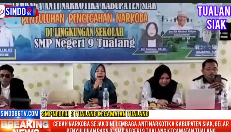 Cegah Narkoba sejak dini,lembaga Anti Narkotika kab Siak gelar penyuluhan P4GN di SMP Negeri 9 Tualang
